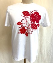【新作】ハイビスカスデザイン 半袖コットンTシャツ